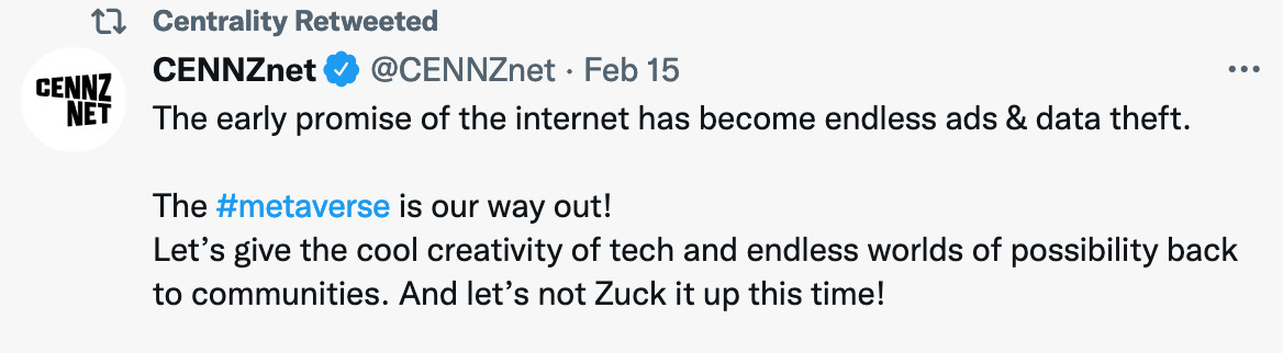 Great news for anyone who doesn’t love the idea of VR or still gets motion sickness from the tech despite the significant improvements from early iterations of virtual reality headsets - the metaverse is not VR gaming first. Giant sigh of relief, right? Big misconception and some worry straight out the window. Another concern? Big corporations and all the insidious things they could do with all our data within the next iteration of the internet - but guess what, Meta is not the only option. We’ll get to the reason to believe in the open metaverse that the strategic genius behind Centrality is building with Futureverse. Perhaps one of the bigger questions we got in response to the informal survey - why is this different from earlier versions and why should I care? Timing and technological innovation is what really makes it different in addition to this transformational place we’re at with the economy and how people feel about the current tech corporations.